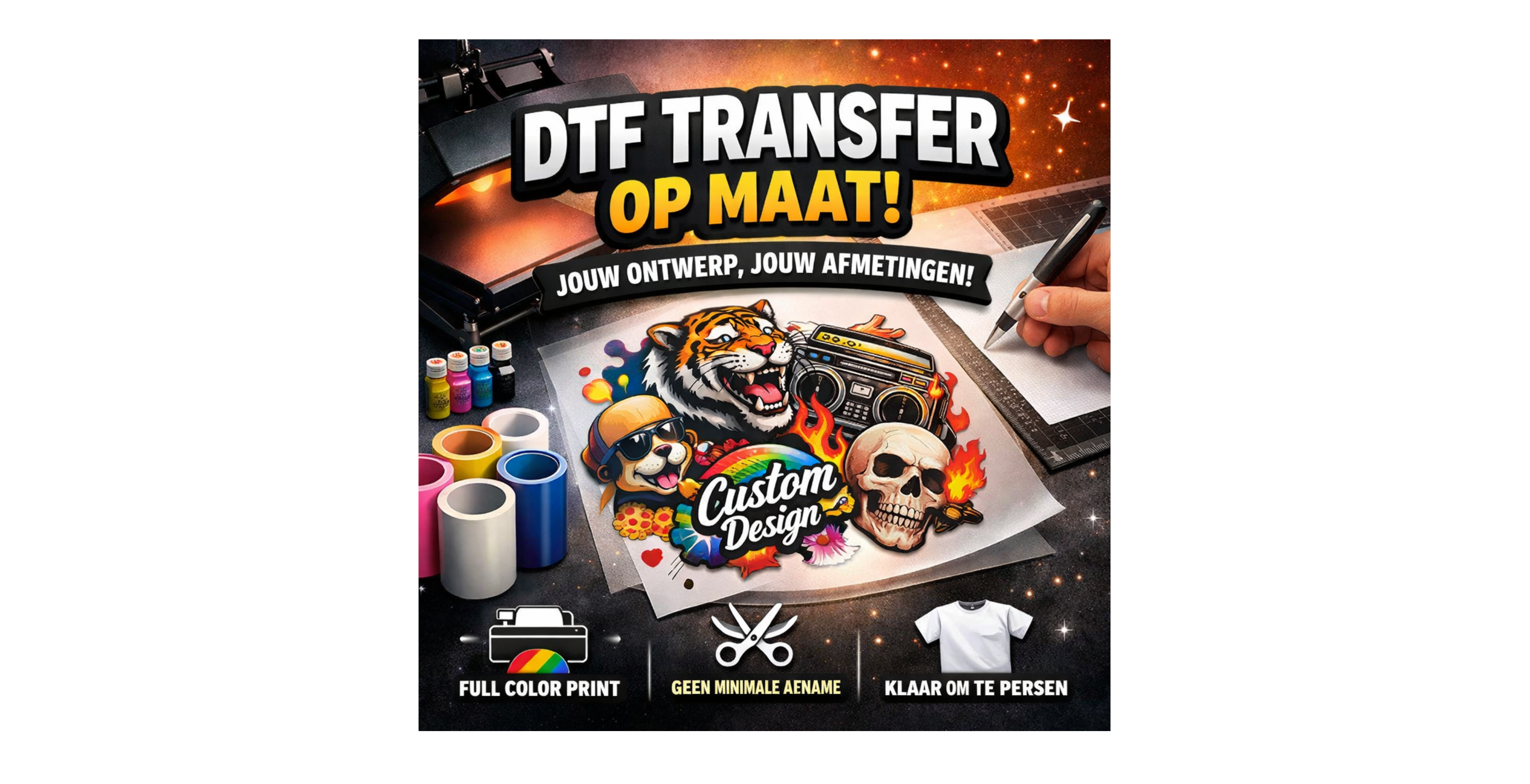 Op zoek naar unieke, gepersonaliseerde prints? Bij Pressure Print transformeren we kleding, mokken en diverse andere producten tot iets bijzonders. Of je nu een cadeau zoekt, je merk wilt versterken of gewoon iets origineels wilt dragen – wij leveren kwaliteitsdrukwerk met passie en precisie. Laat je creativiteit de vrije loop en ontdek de eindeloze mogelijkheden.